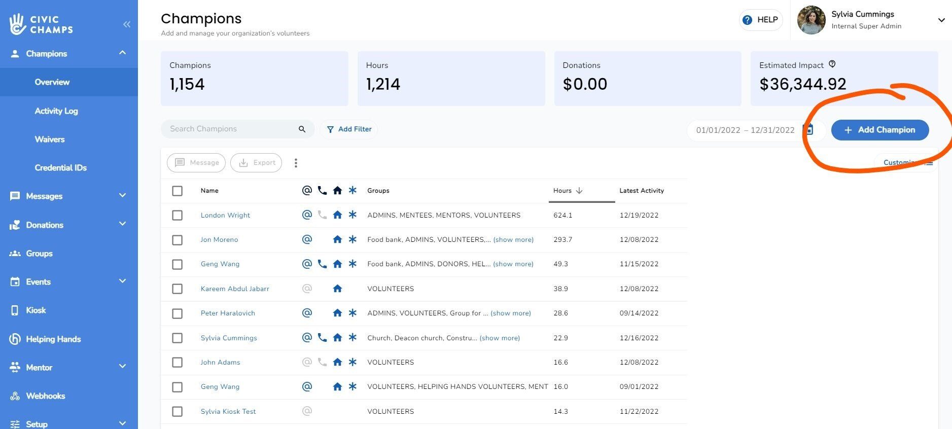 Admin and super admin have the ability to manually add champions as needed. Learn how to do so below.