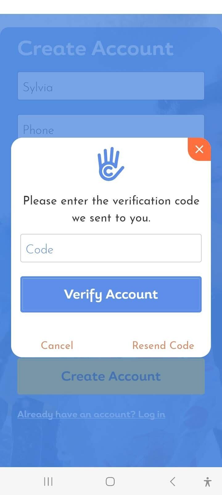 You will then receive a verification code sent to either your phone or email, depending on which was initially provided. Enter the code and choose Verify Account to verify your information. If you do not receive the code within 5 or so minutes, select Resend Code to have another code sent to you. You may also select Cancel if, for whatever reason, you need to return to the previous page.
