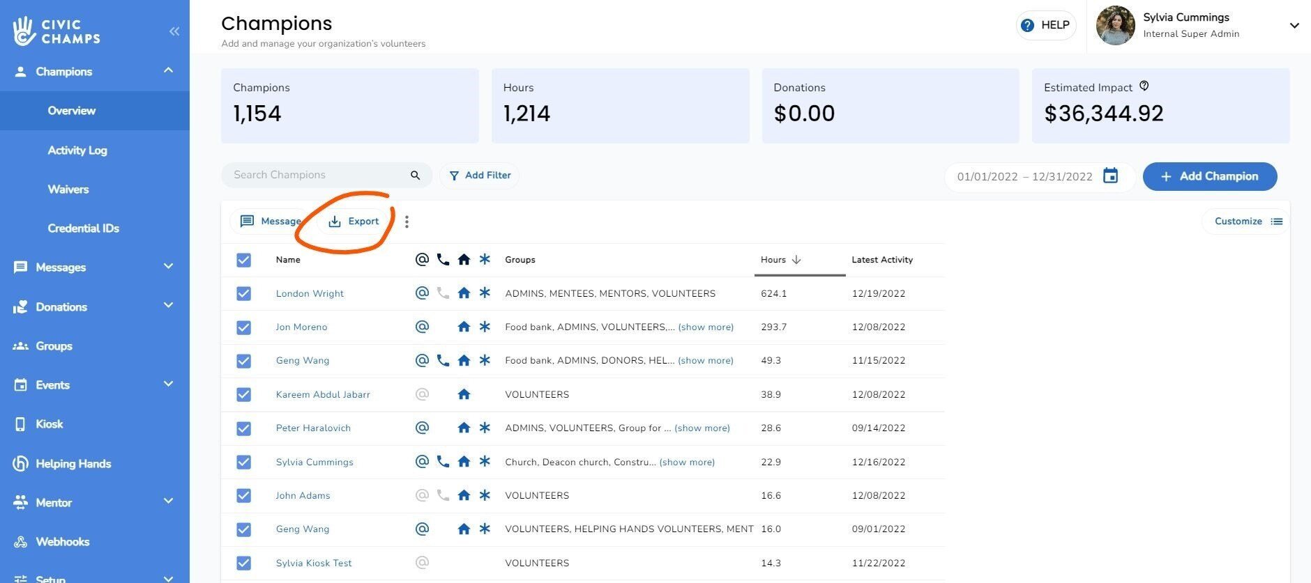 Follow along with the video above to learn how to export Champions data into a CSV file.