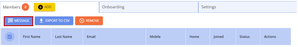 Once you have selected the desired members, click the blue Message button above the dashboard.