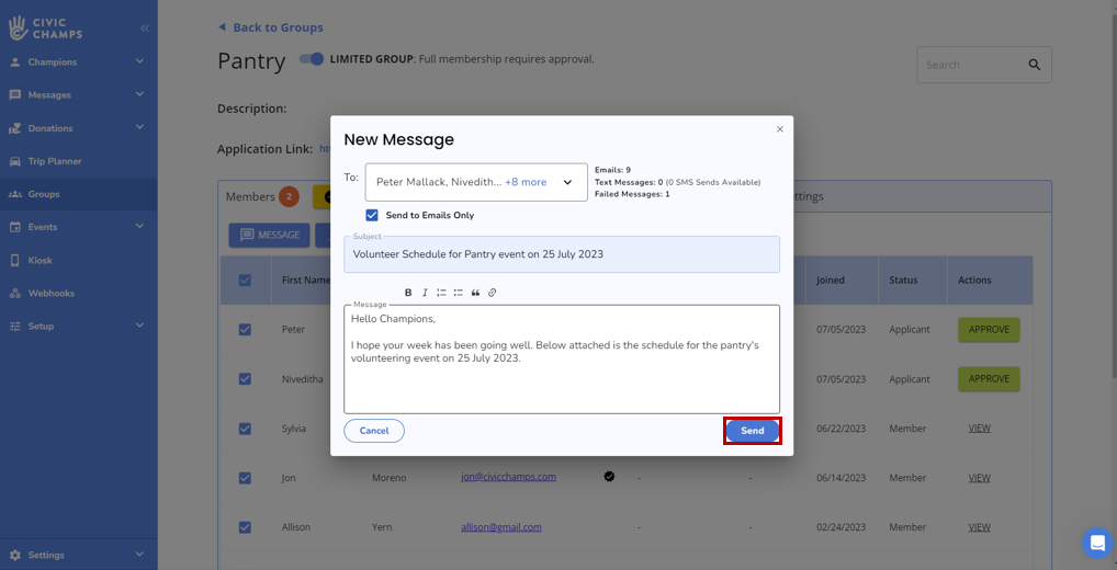 Follow along with the above video to learn how to send a message to volunteers from the Groups tab.